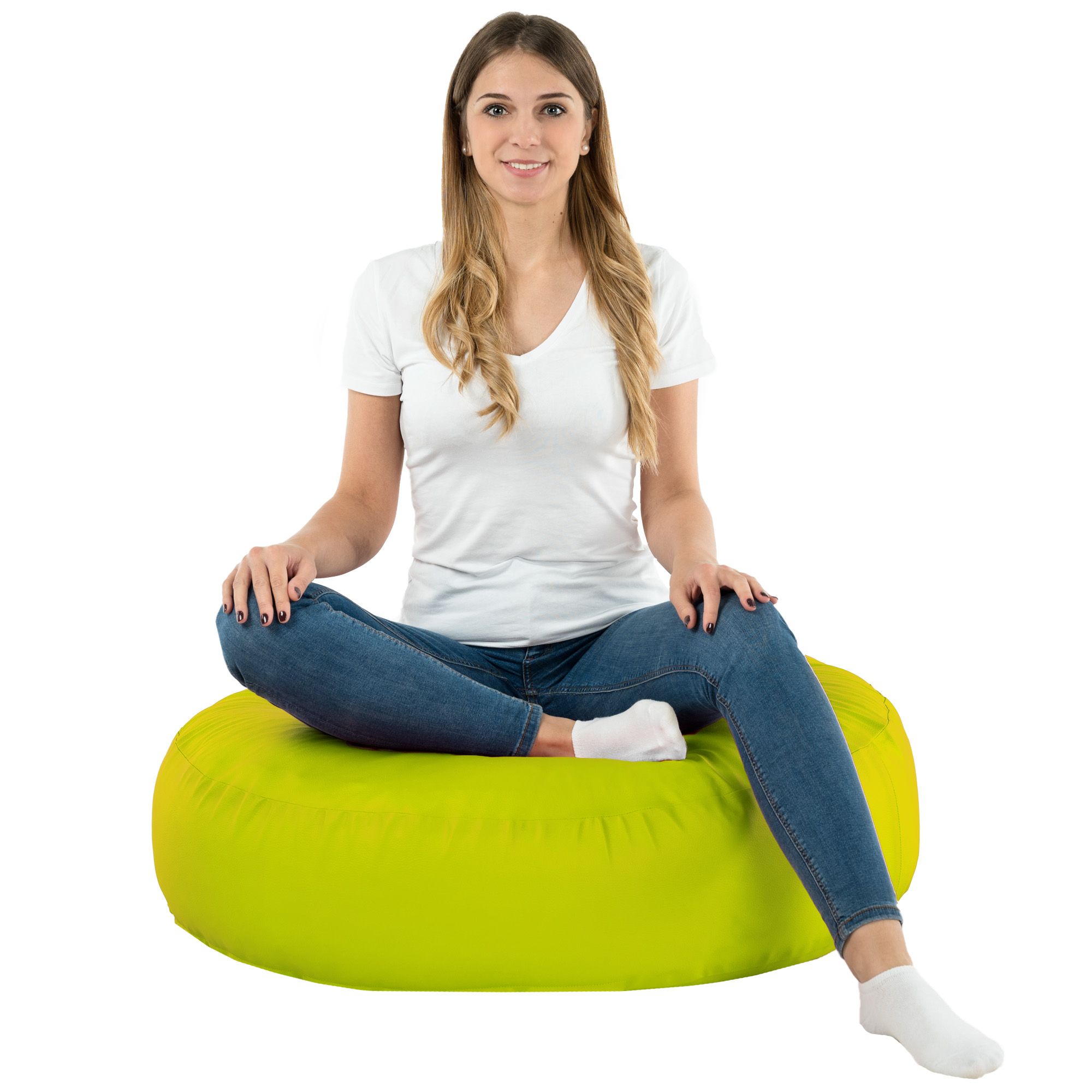 Runder Limettenfarbe-Sitzsack wird zu einer guten Lösung, wenn wir die Einrichtung erhellen möchten. Dank ihm kannst du bisschen Farbe einführen. Der Raum wird interessanter, aber auch bequemer aussehen. Solcher Sitzsack ist sehr komfortabel bei der Nutzung, weil er eine Granulat-Füllung hat, die sich an die Körperform anpasst.