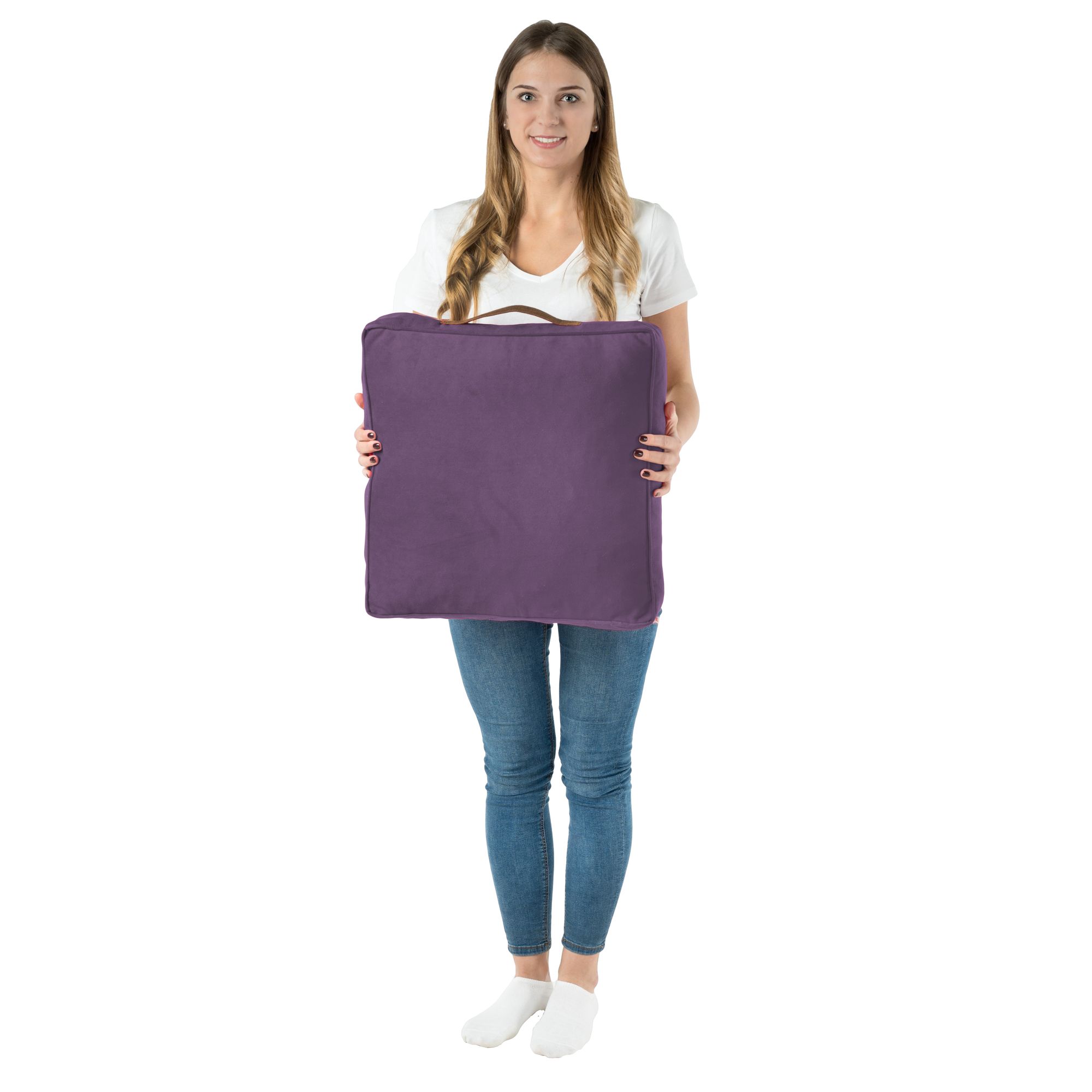 Das Sitzkissen ist vielseitig einsetzbar. Man kann darauf sitzen, es als Beinauflage oder sogar als Minitisch verwenden. Es ist perfekt zum Entspannen, Lesen, Fernsehen und auch zum Spielen für Kinder.
