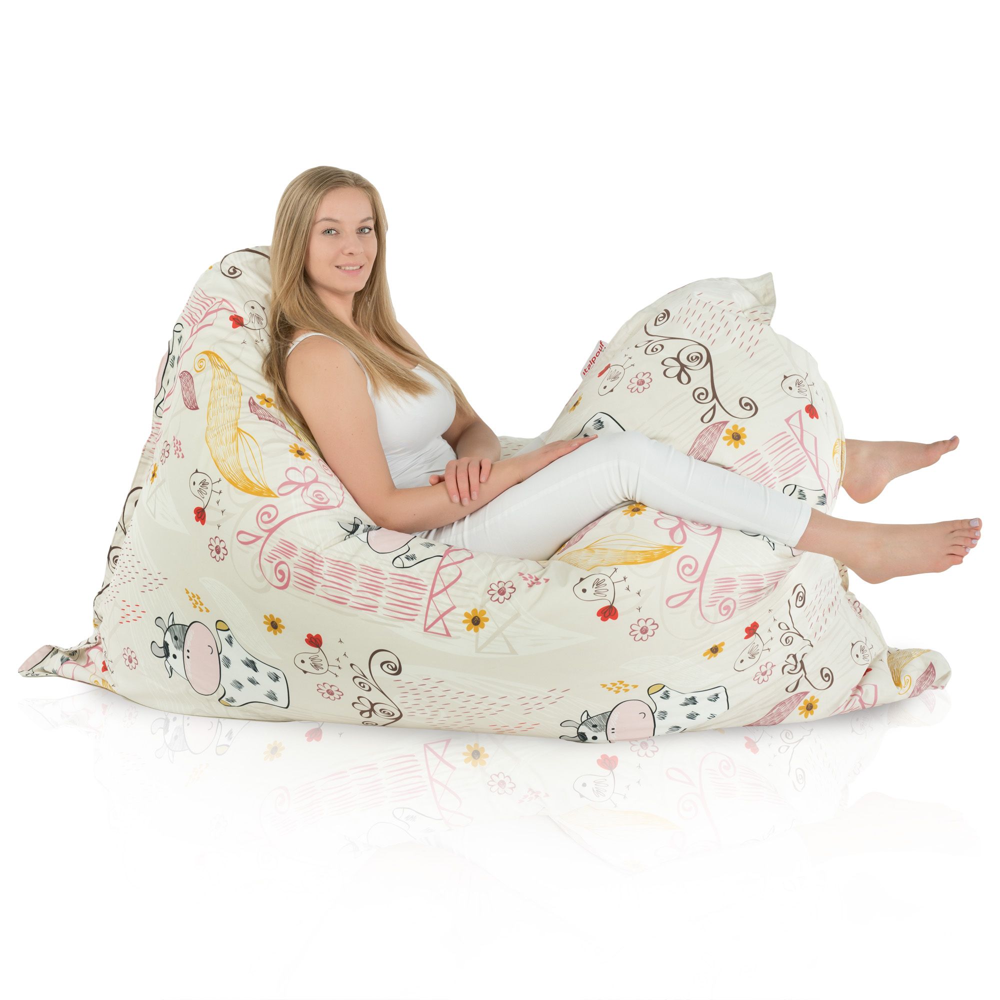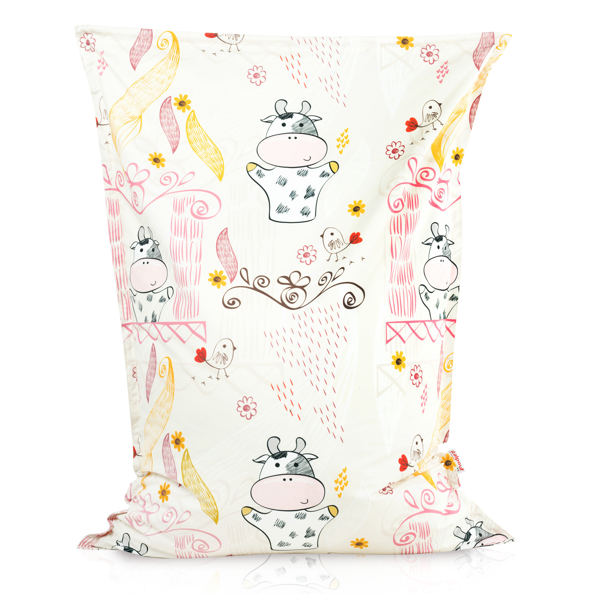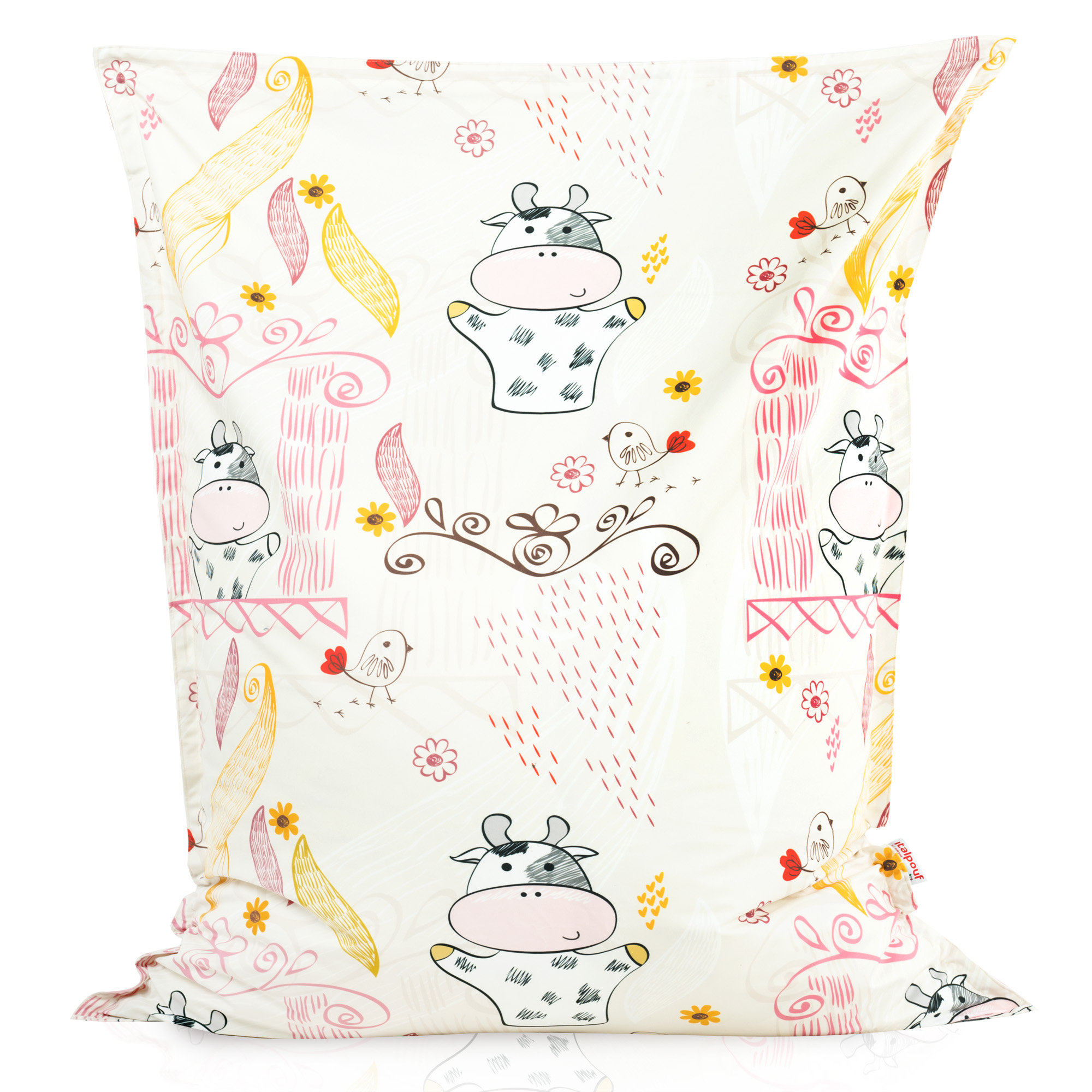 Lustige Kühe, mit denen ein Sitzkissen geschmückt wird , in Verbindung mit Pastellfarben verursacht, dass ein Sitzsack zum Sitzen sehr gut besonders in Kinderzimmern aussieht. Mit dem Gedanken an Kinder werden sie aus sicheren , zertifizierten Stoffen hergestellt.