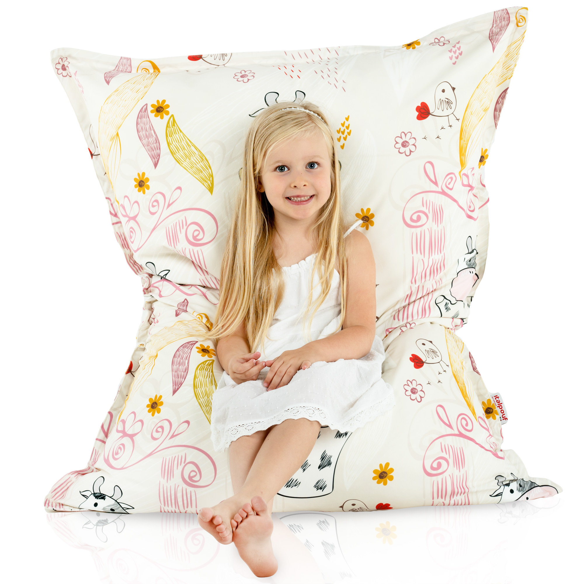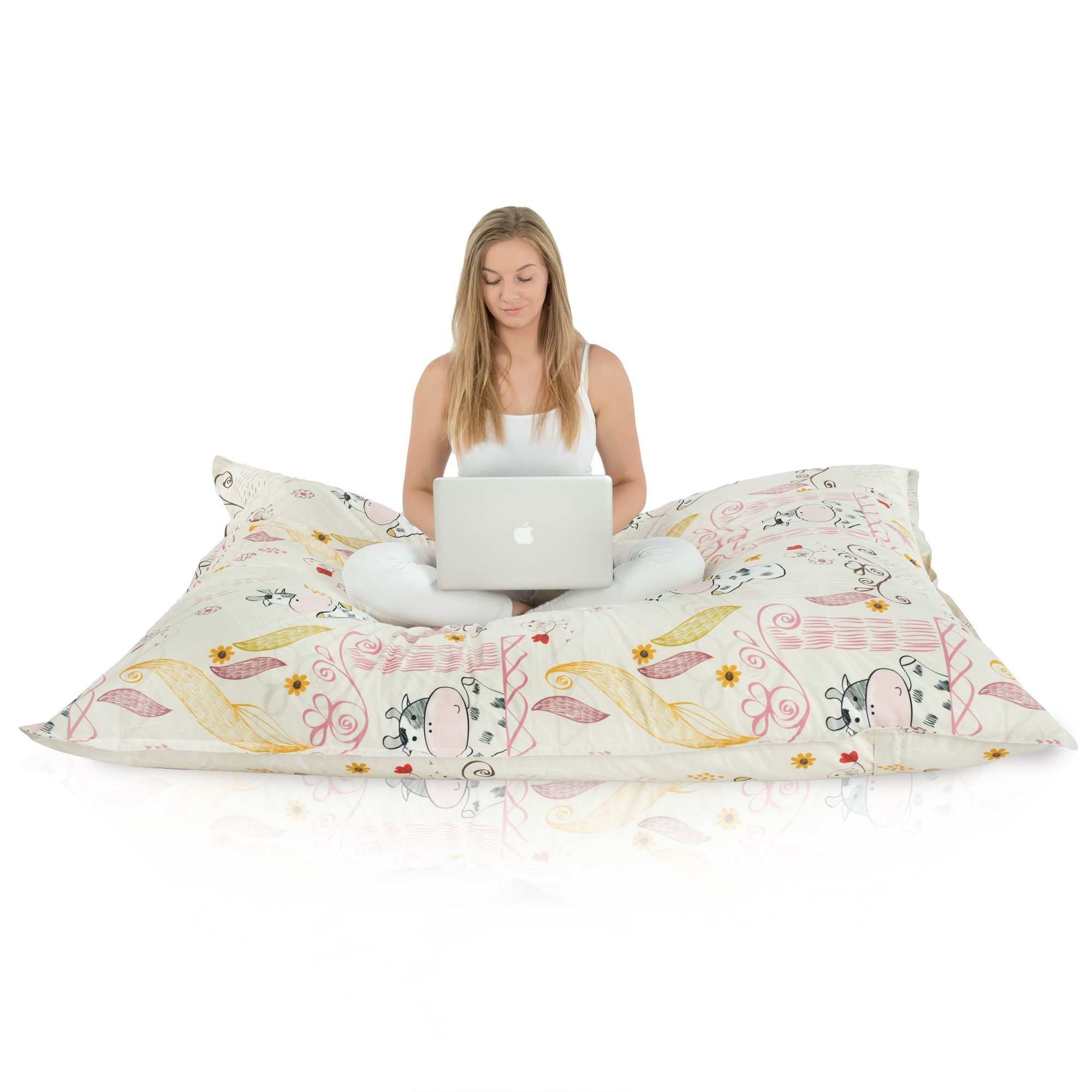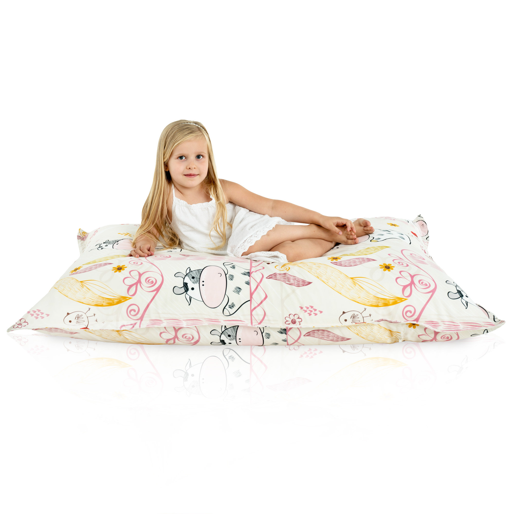 Lustige Kühe, mit denen ein Sitzkissen geschmückt wird , in Verbindung mit Pastellfarben verursacht, dass ein Sitzsack zum Sitzen sehr gut besonders in Kinderzimmern aussieht. Mit dem Gedanken an Kinder werden sie aus sicheren , zertifizierten Stoffen hergestellt.