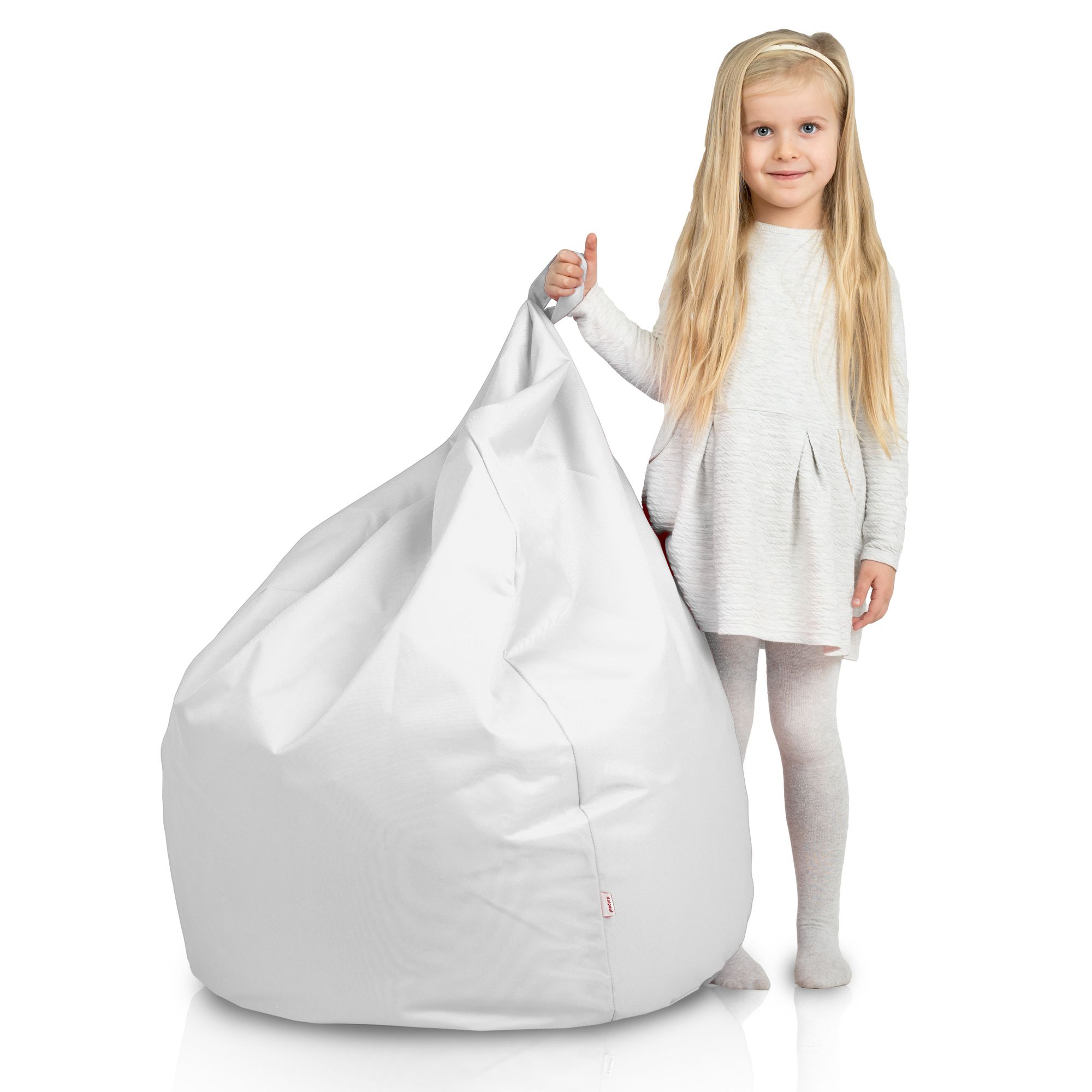 Der weisse Sitzsack für den Garten gestaltet das Aussehen deiner Terrasse abwechslungsreich und gibt ihr einen modernen Charakter. Sitzsack Kinder wurde aus wasserabweichenden Stoffen hergestellt, deswegen kannst du das Möbel ohne Sorge draußen vor das Haus stellen.